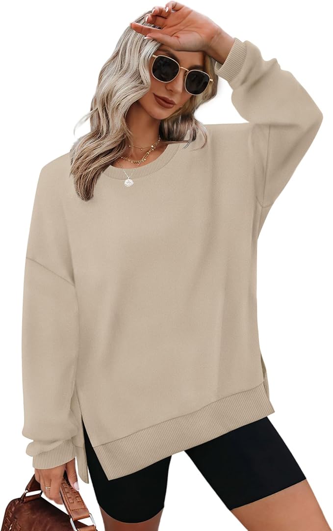 Sweatshirts for Women Oversized Jumpers Ladies Crewneck Long Sleeve Tops Side Split