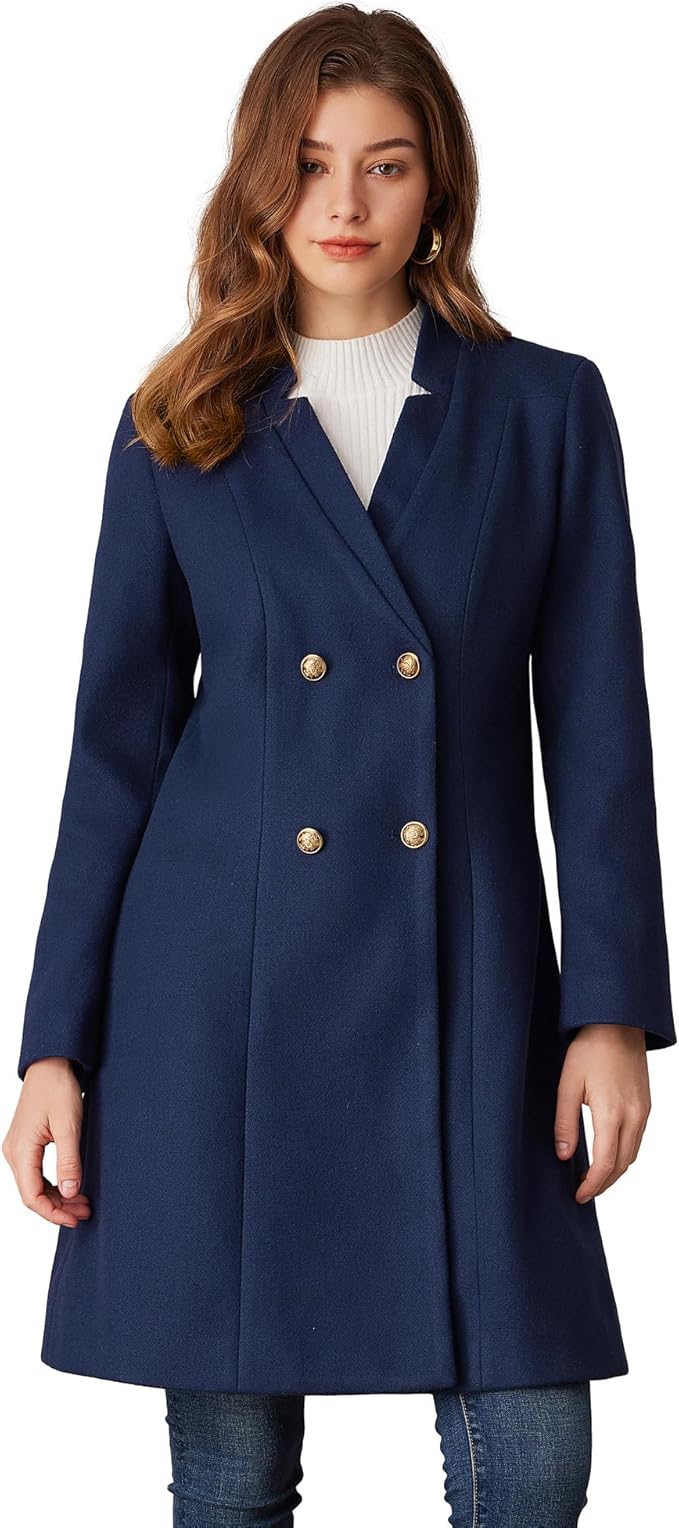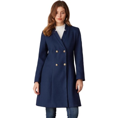 Women'S Winter Elegant Coat V-Neck Double-Breasted Knee-Length