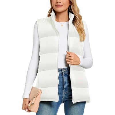 Women's Padded Zip up Outwear Vest Stand Collar Lightweight Warm Sleeveless Quilted Jacket
