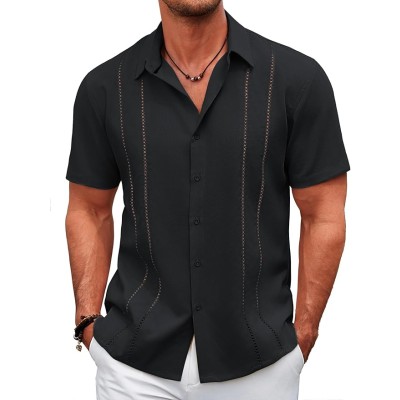COOFANDY Men's Cuban Guayabera Shirt Casual Short Sleeve Button Down Shirts Summer Beach Shirts