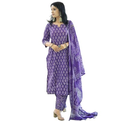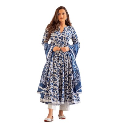Women's Cotton Printed Anarkali Kurta with Palazzo & Dupatta Set