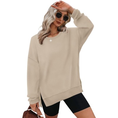 Sweatshirts for Women Oversized Jumpers Ladies Crewneck Long Sleeve Tops Side Split