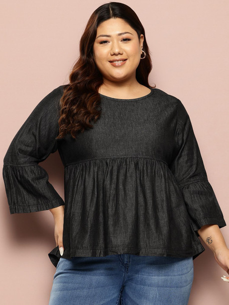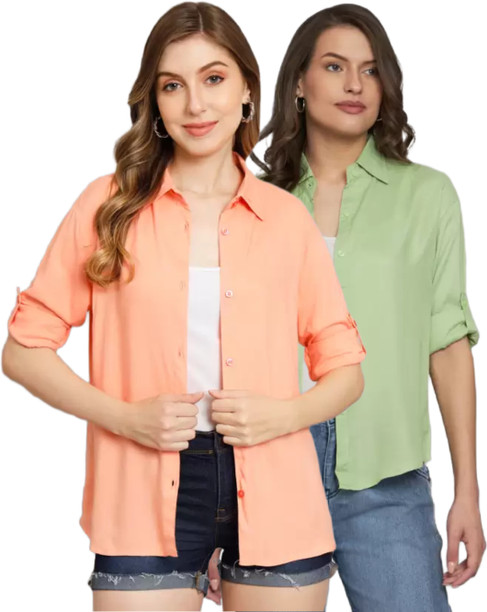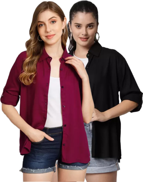 Women Relaxed Fit Fit Solid Cut Away Collar Casual Shir...