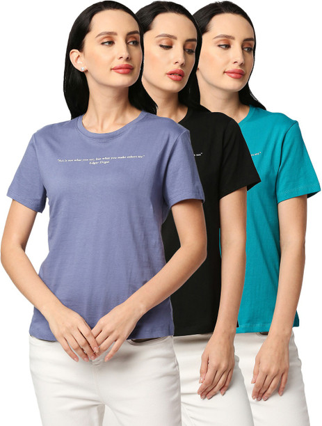 Pack of 3 Pack Of 03 Cotton Jersey T-Shirts Women Graph...