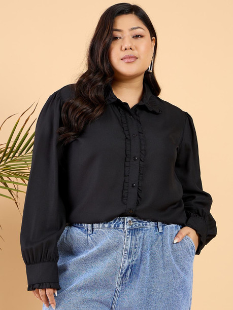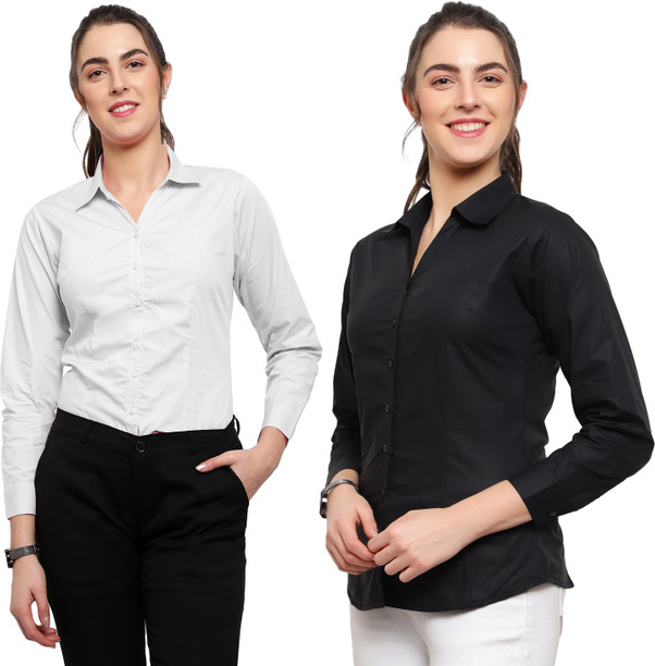 Women Regular Fit Solid Curved Collar Formal Shirt