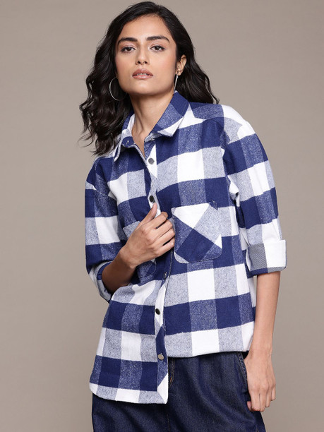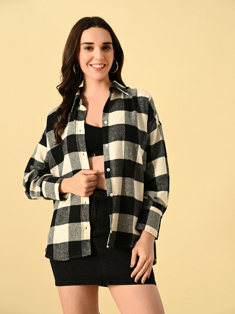 Women Relaxed Fit Fit Checkered Spread Collar Casual Sh...